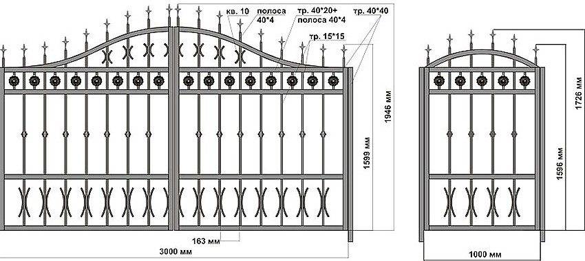Чертежи, схемы и эскизы для изготовления распашных ворот своими руками