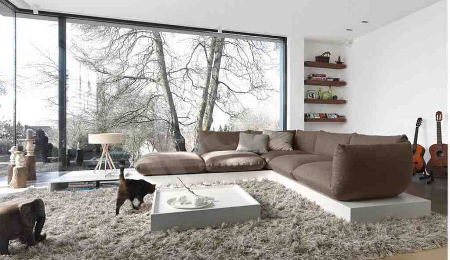 Нежелательны в гостиной покрытия с длинным ворсом — их место в спальне. Если существенным фактором является простота уборки, то лучше выбирать полотно с коротким ворсом. На нем почти не остаются следы от ножек мебели.