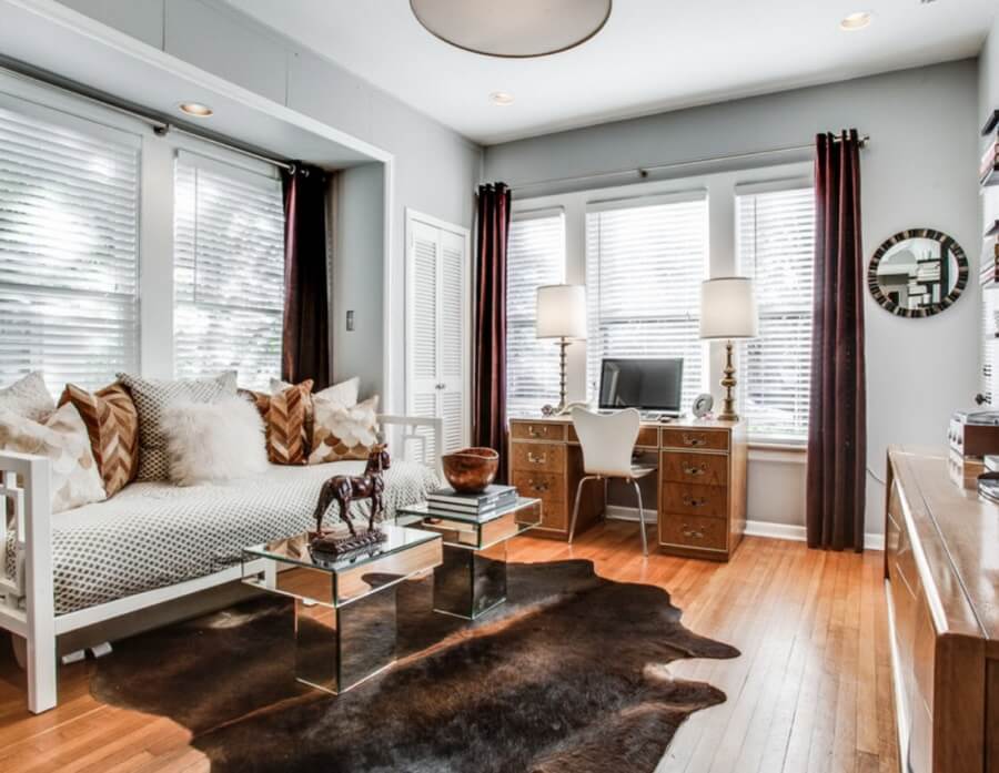 Пару десятков лет назад золотым стандартом использования ковра было полное покрытие им всей площади комнаты (иногда даже стены). Делалось это ради сохранения тепла. Сегодня необходимость в этом отпадает — более симпатично комната выглядит, когда палас покрывает лишь ее часть. Это позволяет ему выполнять еще одну функцию — зонирование помещения.
