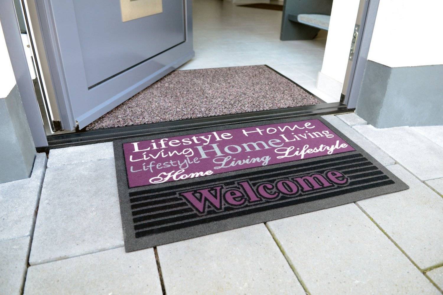 Особенностью такого изделия является то, что оно кладется непосредственно под дверь и совершенно не мешает входящим людям. На нём можно оставлять обувь, чтобы не распространять снег и грязь по всей прихожей. Очень часто такие изделия закрепляют к полу присосками или другим приспособлением, чтобы они надёжно фиксировались и с них не стряхивалась грязь и не стекала вода. Их основная функция – очистить обувь от уличной грязи.