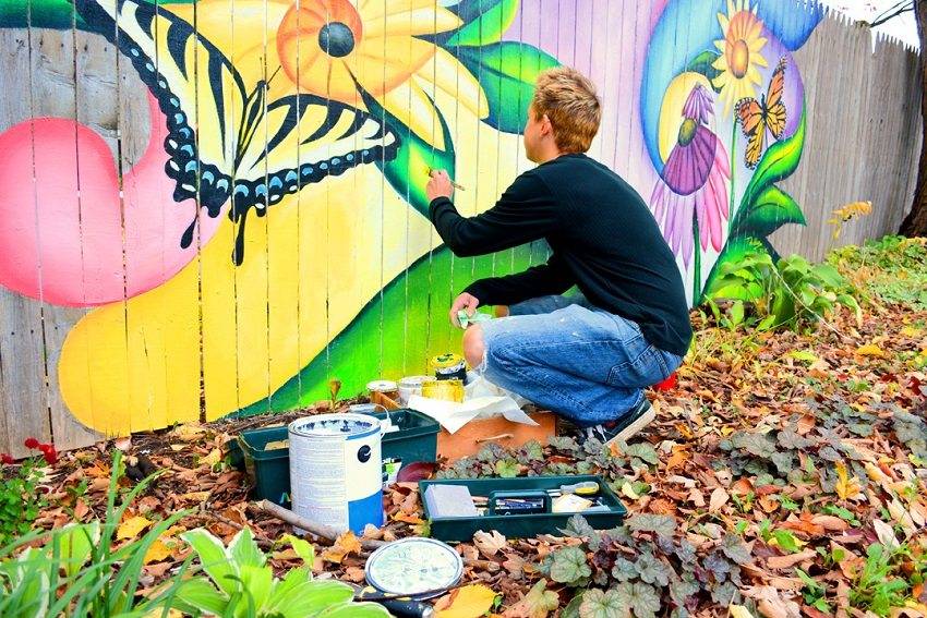 Ярко разрисовать штакетник поможет специальная краска для деревянных заборов