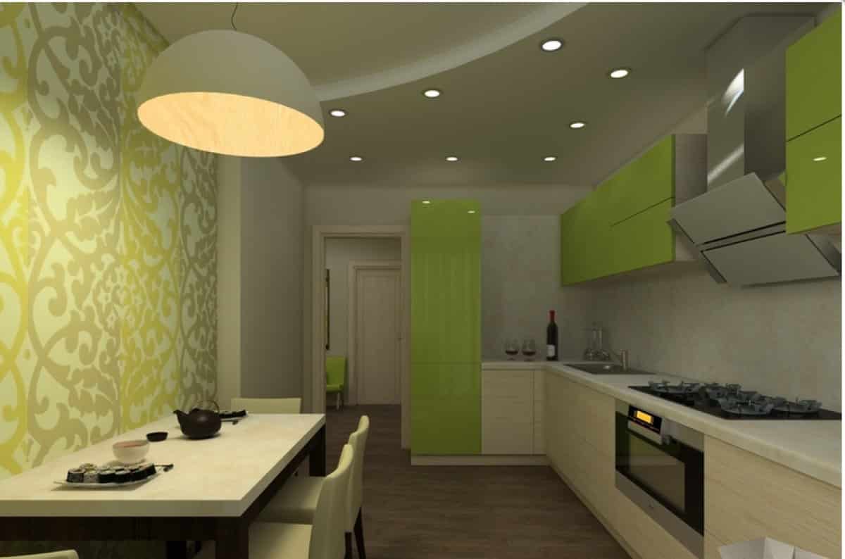 Правильная оклейка стен: создание визуальной глубины, иллюзия приподнятых потолков — сыграет огромную роль при формировании оригинального и ни с чем несравнимого дизайна. Помните, что зеленый оттенок стен будет требовать достатка освещения. Поэтому вам пригодятся не только люстры, но и дополнительные потолочные светильники, а возможно и настенные.