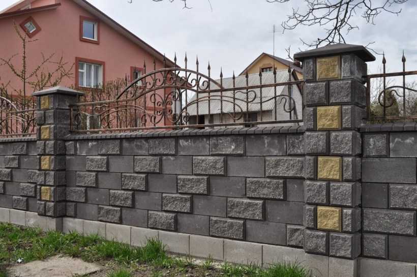 Фундамент комбинированных заборов может быть выполнен из различных материалов, но в любом случае он будет выглядеть эстетичнее, если его оштукатурить и покрасить в тон, который будет сочетаться с фасадом здания или элементами ландшафтного дизайна приусадебного участка или небольшого заднего дворика.