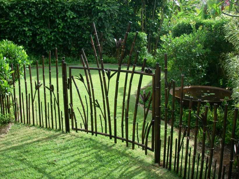 Забор, изготовленный вручную, считается настоящим произведением искусства. Сооружение может иметь выдвижной механизм для ворот, улучшающий функциональные качества при эксплуатации.
