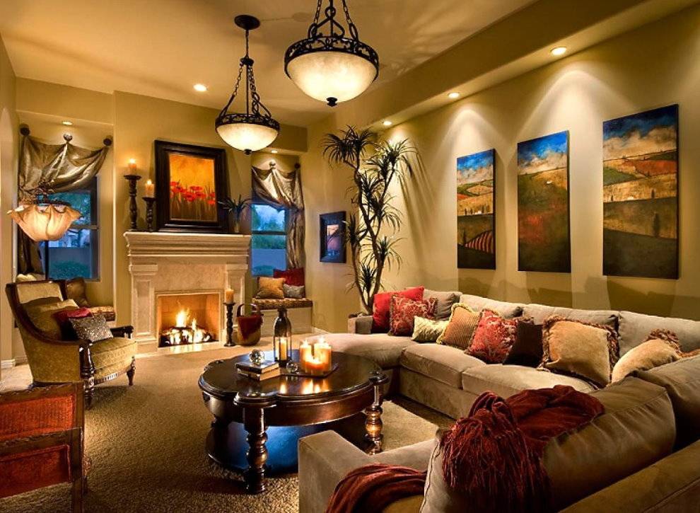 Настольные светильники с желтым светом выгодно подчеркнут зону отдыха гостиной