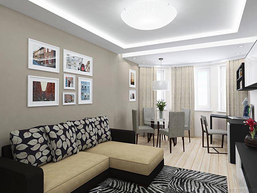 Изменив планировку квартиры и совместив обеденную зону с гостиной, можно приниматься за создание интерьера помещения. Оформленный в едином стиле интерьер поможет сделать пространство еще более комфортным и уютным.
