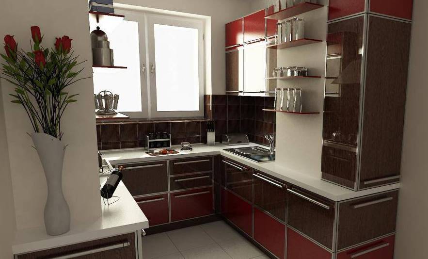 Особое внимание в планировке подобной комнаты следует уделить выбору мебели и всевозможные угловые конструкции здесь совсем не наш вариант. А вот различные дополнения фасадов стеклянными или пластиковыми деталями позволят кухне «дышать» и расширят весь интерьер