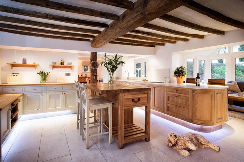 Мебель для кухни в стиле кантри должна быть изготовлена из натурального дерева
