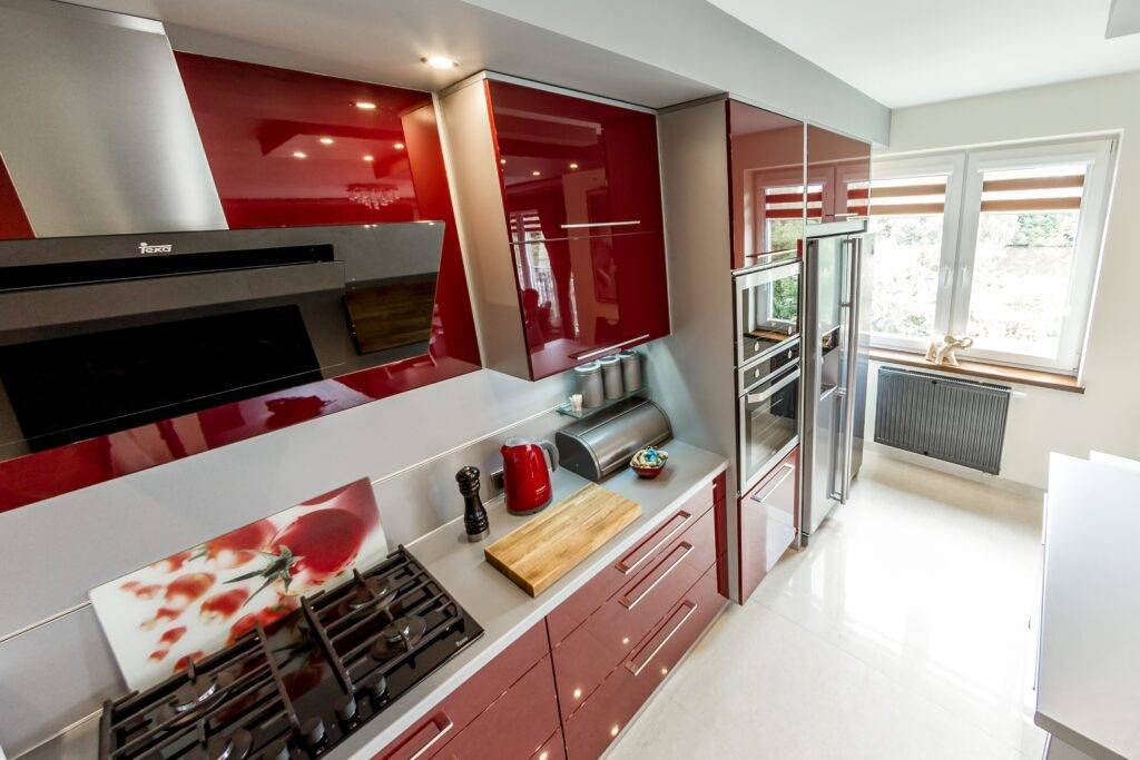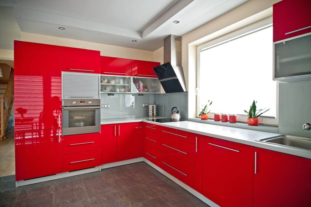 Что выбрать — глянец или мат при обустройстве кухни в красных тонах