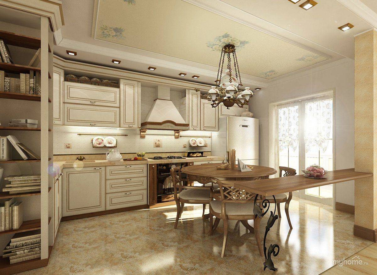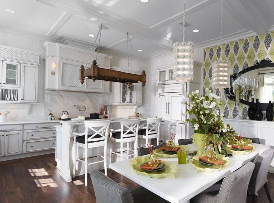 В кухнях, совмещенных с гостиными стиль прованс очень часто сочетается с классикой