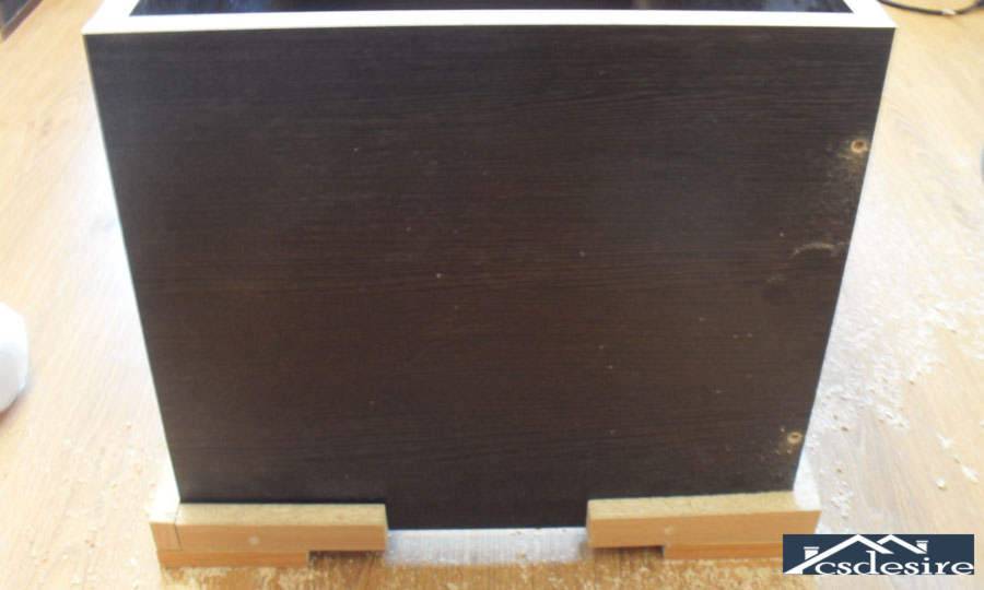 - располагаем торцом стенку шкафа или ящика на ровной поверхности так, чтобы в готовом виде ящик оказался фасадом вверх;