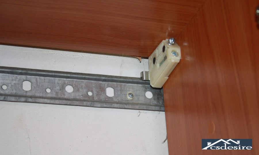 - Навесные шкафы можно закреплять с помощью монтажной планки – одна ее часть закрепляется на стене, а вторая – с задней стенки шкафа. Однако чертежи могут предусматривать и привычные петли.