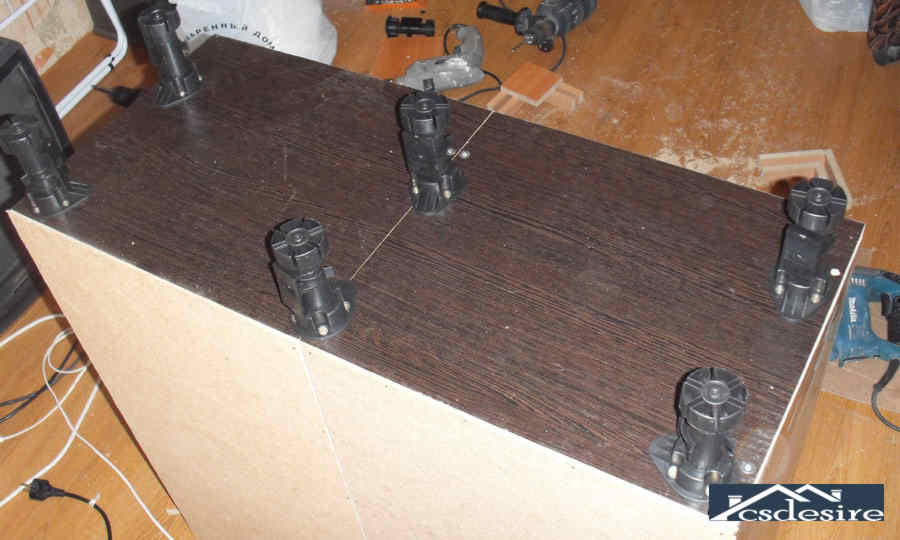 - если он будет располагаться внизу, то закрепляем регулировочными винтами ножки.