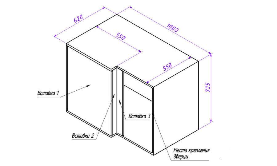 Вот так будет выглядеть схема стандартного навесного шкафа: