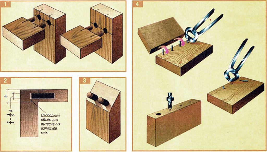 клея – чаще в комбинации со столярными соединениями или резьбовыми элементами.