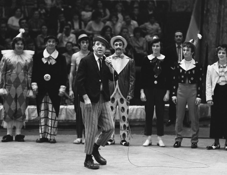 Народный артист СССР Юрий Никулин во время представления зрителям группы учеников клоунской студии. Фото: Клипиницер Борис/ТАСС