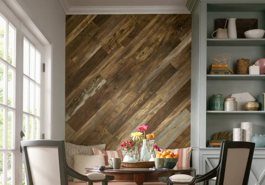 Если требуется стиль кантри, выбирается более темная текстура. Предпочтительны имитация бревен, доски с четкой текстурой древесины, натуральные балки