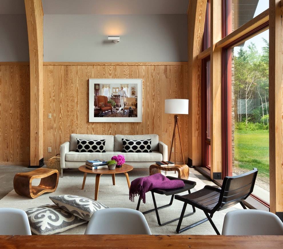 Для расширения пространства комнаты можно положить панели, идентичные полу. При этом отделка должна сочетаться со стилем всего оформления. Для кантри, лофта подойдет более грубая и темная древесина. Хай-тек можно разнообразить ламинированными панелями, имитирующими камень или бетон. Создавая уютное скандинавское помещение, используйте светлые тона покрытий. Если целью является оригинальное и необычное помещение, следует использовать комбинации различных контрастных оттенков. Подробнее об особенностях подбора дополнительных цветовых решений читайте далее.