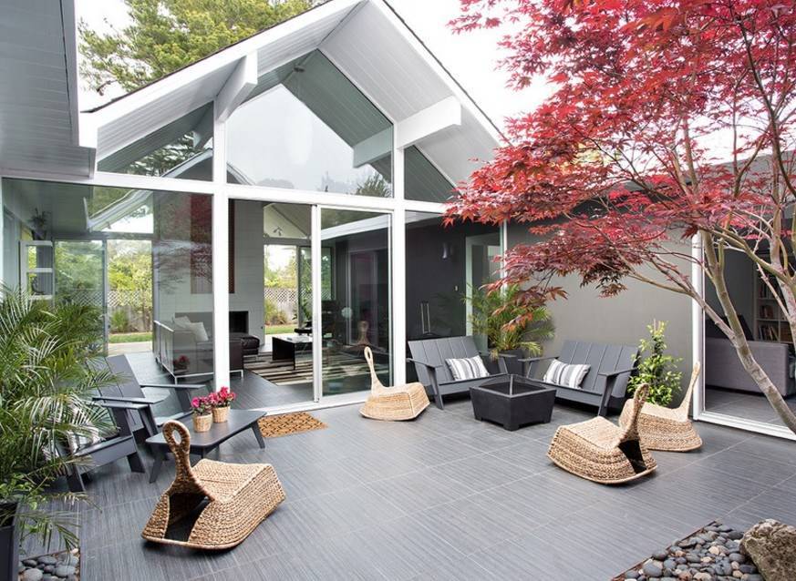 Отличная планировка такого внутреннего дворика подарит жилищу уют и комфортабельность, а своим обладателям позволит насладиться природой.