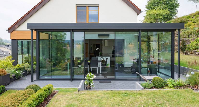 Роскошная веранда с панорамным остеклением как пристройка к частному домуИсточник qqsh.info