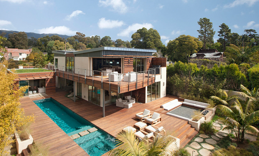 Красивый дизайн участка при загородном доме с бассейномИсточник pinterest.com