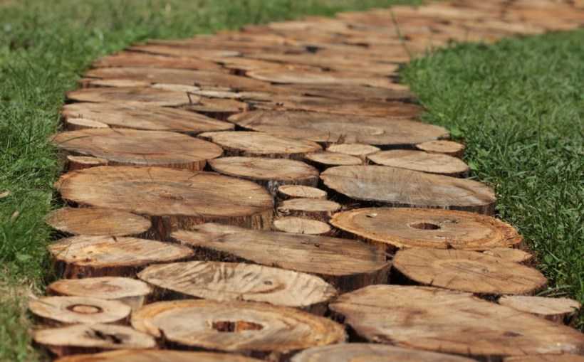 - Эффектно смотрятся в тропинках круги, нарезанные из старого дерева с толстым стволом.