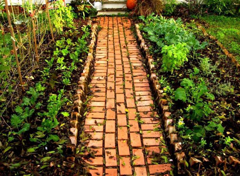 - Садовые дорожки из камня, кирпича или другого, контрастирующего с зеленью материала;