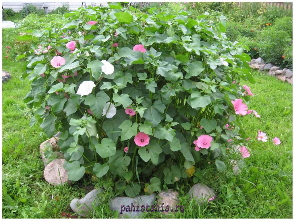 Кустистое высокорослое растение лаватера украшает цветники и не нуждается в особом уходе