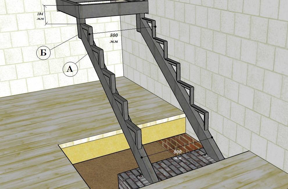 Эти параметры определяют габариты элементов, из которых сваривается железный каркас лесенки. Одни из них играют роль проступи, другие – подступенка. В этом плане главная задача определить их размеры.