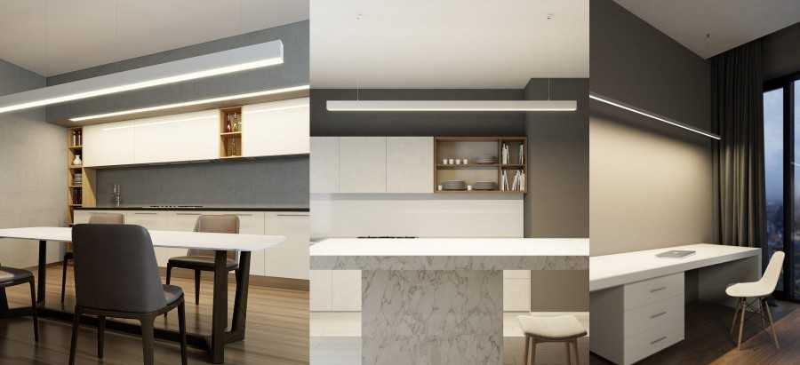 К сведению! Важным преимуществом светодиодных линейных светильников считаются высокие декоративные качества приборов. В отличие от точечных либо панельных конструкций, длинный и узкий корпус больше подходит для современных интерьеров.