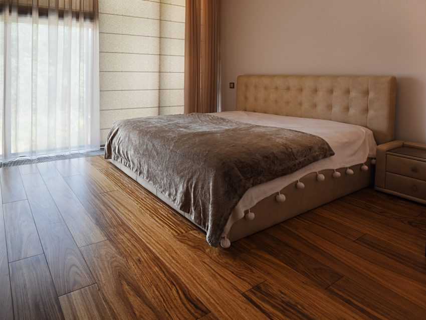 Деревянные полы в спальне чаще встречаются в частных домах, чем в городских квартирах.