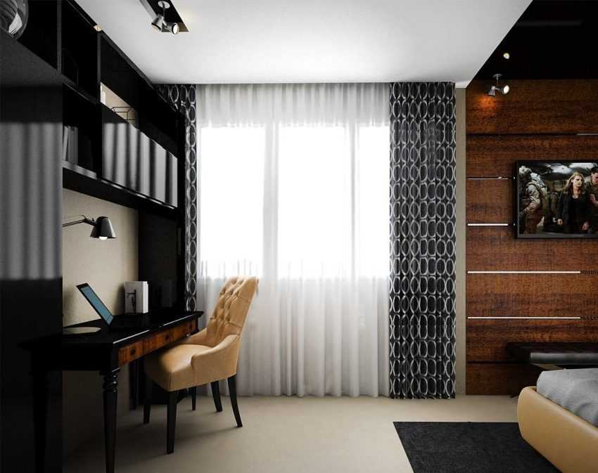 Важно, чтобы с линолеумом сочетались шторы или жалюзи, либо накидка на кровати. Мебель лучше подобрать контрастного оттенка