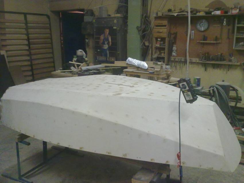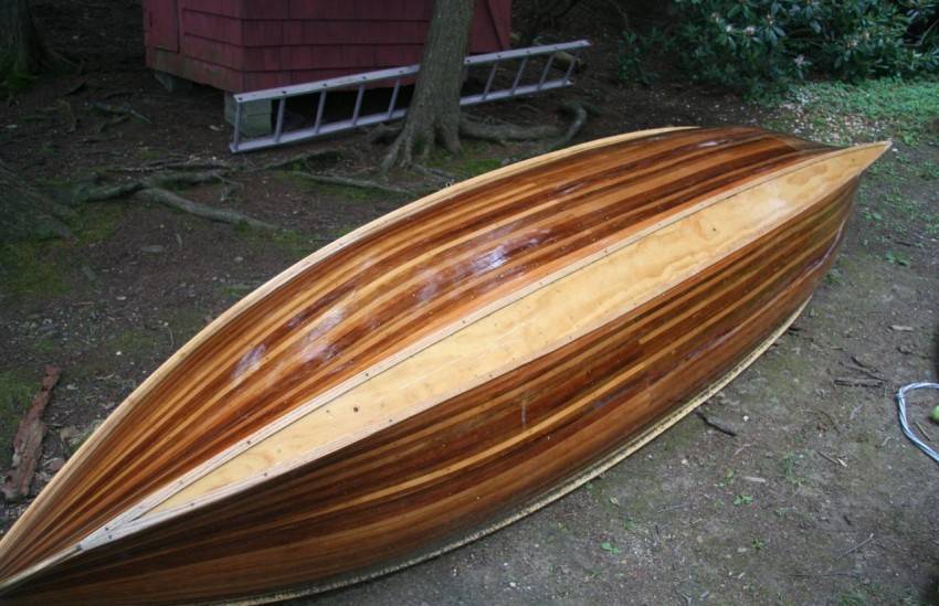 при проклейке заготовок, следует обращать внимание на направление волокон внешного слоя фанеры. Они должны располагаться вдоль, а не поперек лодки.