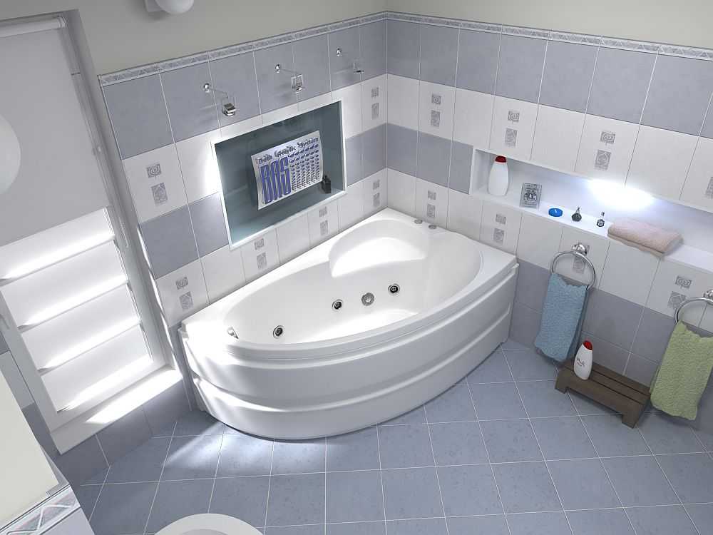 - Самый маленький размер угловой ванны 90 на 90 см. Место можно сэкономить только в одном углу комнаты.