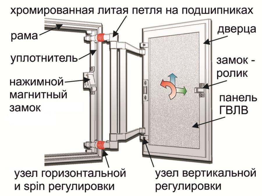 Каждая модель имеет собственные конструкционные особенности, но базовые принципы их устройства примерно одинаковы: рама, петли и дверца