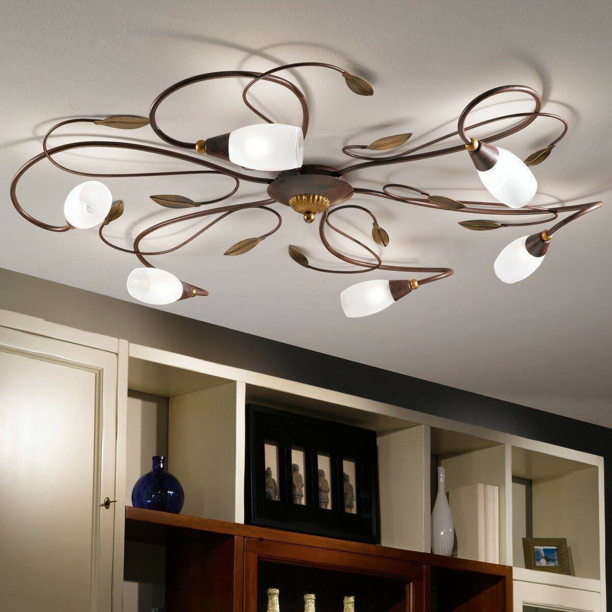 Стоит выбирать кованые люстры или светильники под старину.