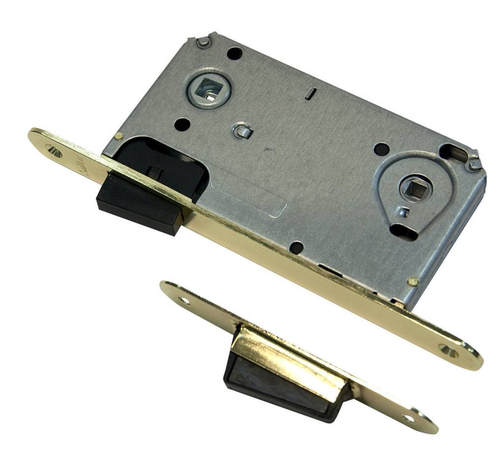 - Отсутствие торчащего ригеля в открытой двери делает ее вид более эстетичным. В механических моделях случайно заблокированный в выдвинутом положении ригель при попытке закрытия двери может повредить наличник, что исключено в данном виде механизмов.