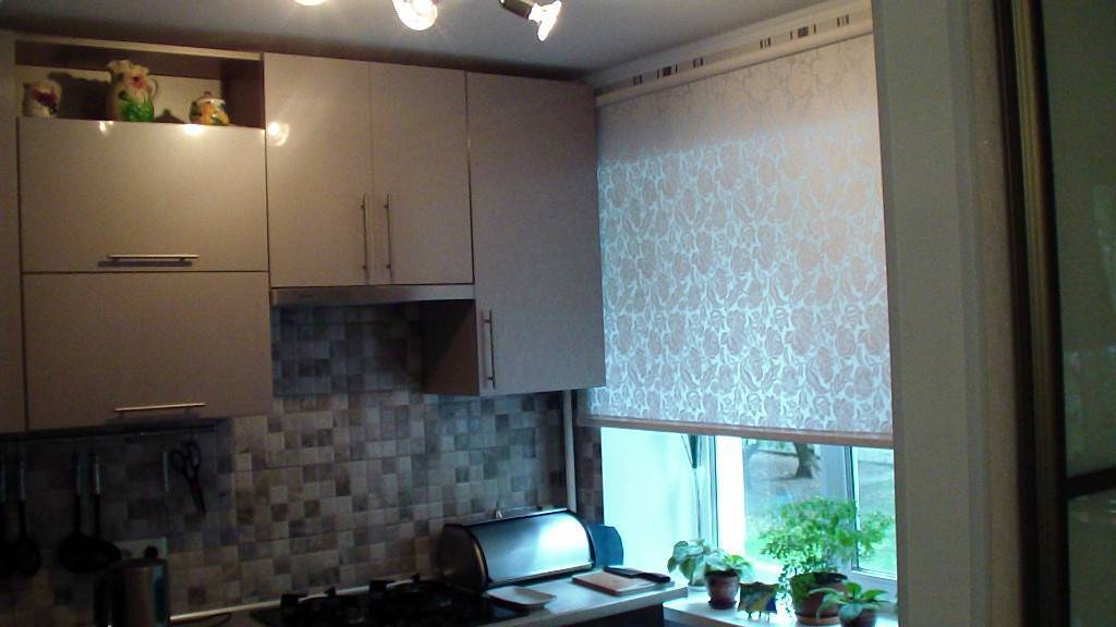 Для небольшой кухни подойдут жалюзи различных моделей и рулонные шторы. Их прелесть в возможности регулировать количество поступающего света, при том, что сами подъемные конструкции не занимают лишнего места, не перегружают интерьер и прекрасно уживаются с гардинами, тюлем или кисеей.