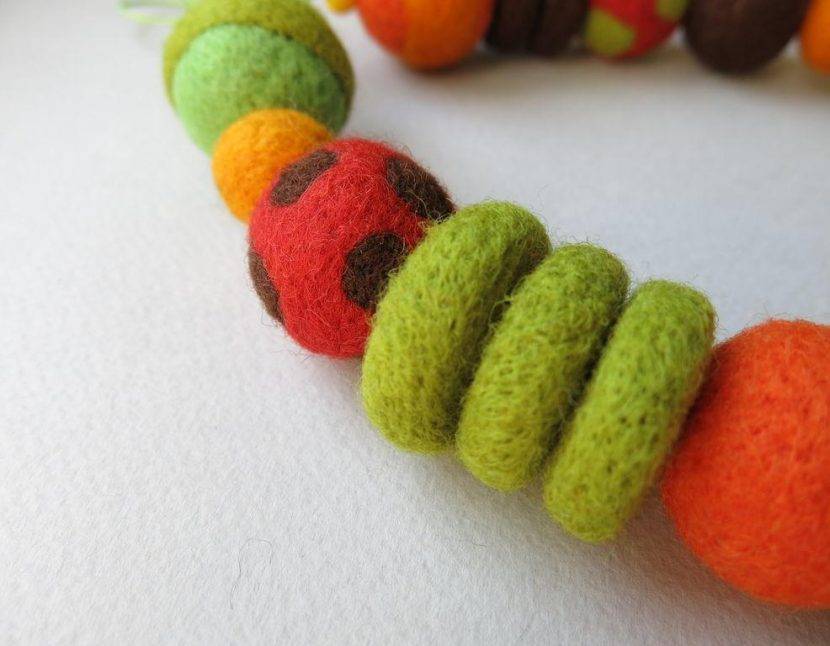 Валяные бусы из шерсти