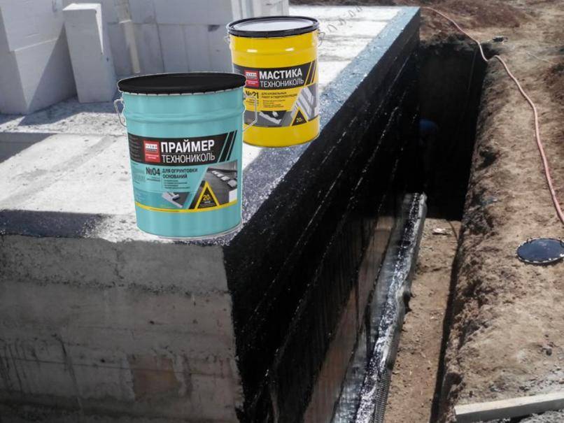 Следующая процедура чрезвычайно необходима для обеспечения надежной гидроизоляции фундамента. Высушенная поверхность для улучшения сцепляющих свойств и уменьшения расхода обмазочного материала грунтуется праймером, который соответствует марке приобретенной смеси.