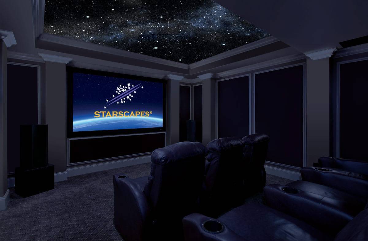 - При помощи оптоволоконных нитей, подключённых к источнику света. Концы нитей подводятся либо вплотную к тыльной стороне натяжного потолка, либо даже пропускаются сквозь него через микроскопические отверстия. Для обозначения крупных звёзд или комет часто используют хрустальные рассеиватели Сваровски и др. виды «бижутерии».