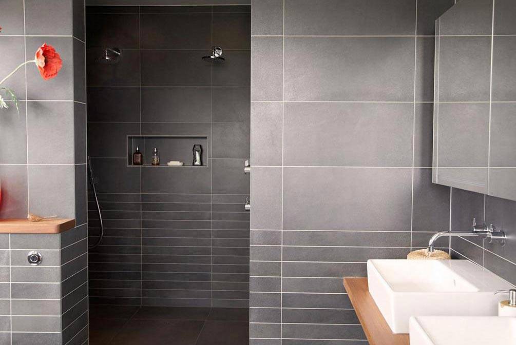 На фото крупноформатная плитка с неприметной затиркой в тон.