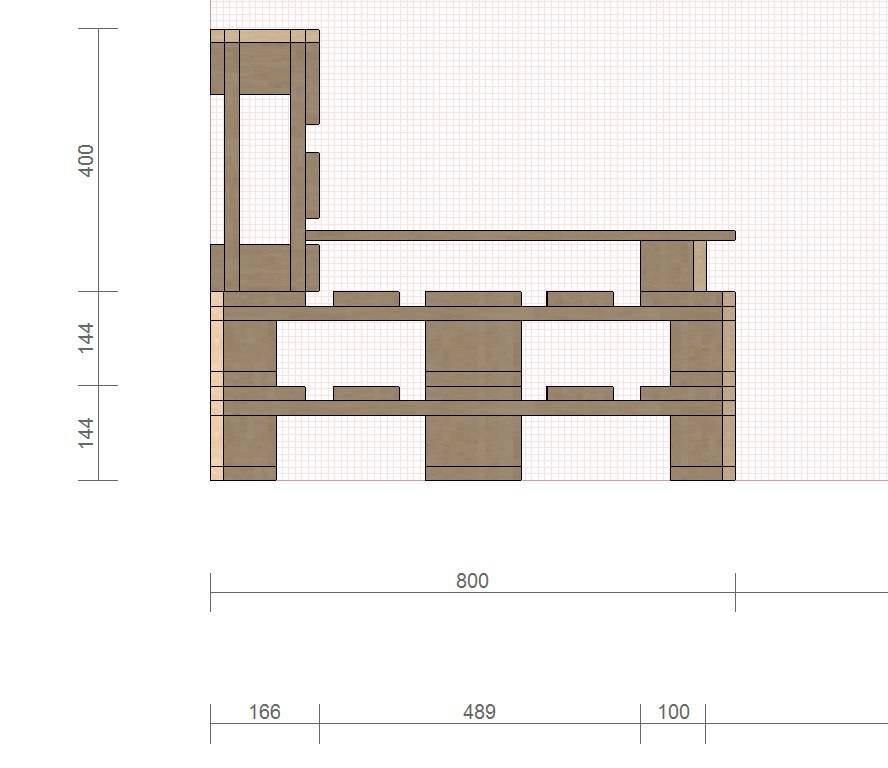 - Из четырех паллет формируют каркас для стойки: две паллеты образуют переднюю стенку бара, две ограничивают боковые поверхности.