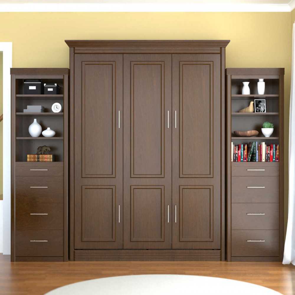 - Выдвижной с вертикальной раскладкой. Такая модель фактически является раскладываемой кроватью, функция шкафа в которой условна и минимальна.