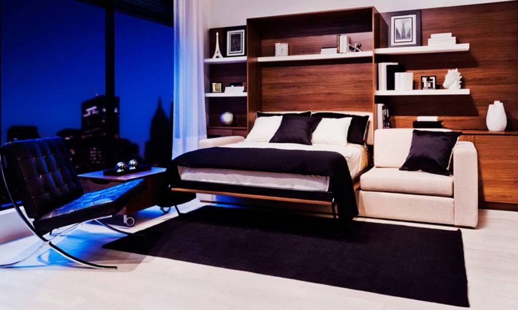 - Экономия пространства. Возможность полностью освобождать территорию квартиры от лишних крупногабаритных предметов мебели, менять конфигурацию шкафов или кровати в зависимости от времени суток.