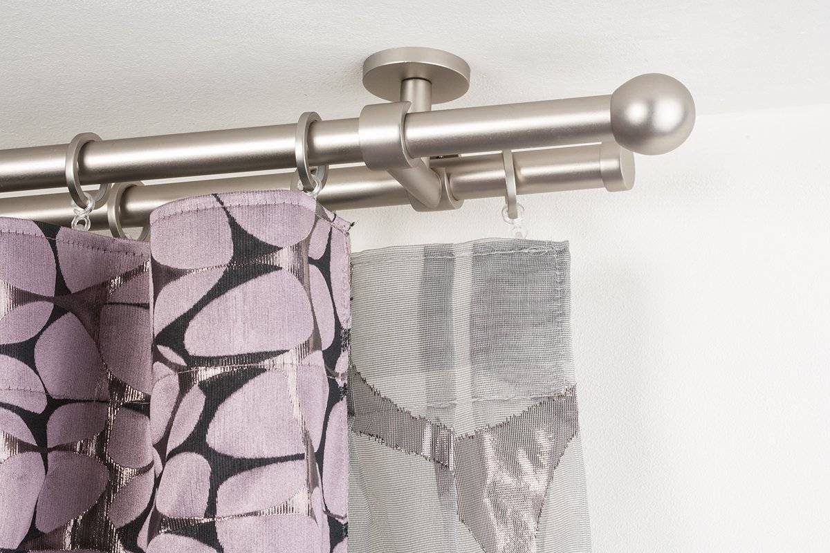 Трубчатые системы крепления для штор обычно одно- и двухрядные. Первые удобны для обустройства ванной комнаты, детской, кухни. Вторые подходят для оформления проемов в гостиной, спальне, кабинете.