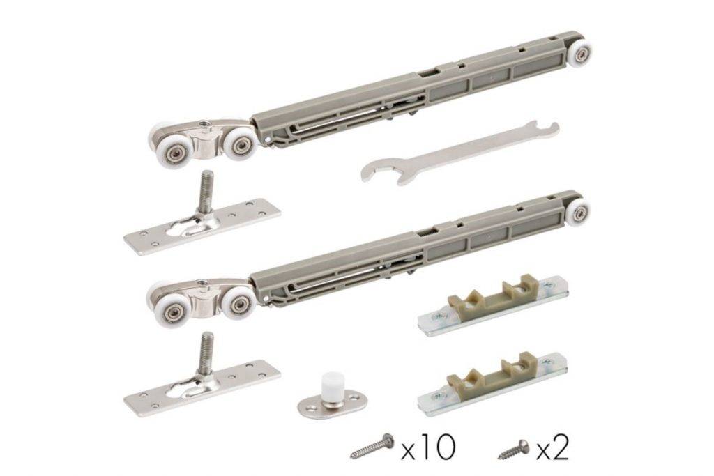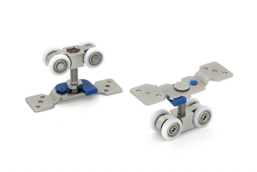 Ролики – это еще один ключевой механизм в работе раздвижной двери. Для полотен весом до 30 кг вполне достаточно двух роликов, если же полотно тяжелее, то нужно 4 и более роликов. При выборе их не стоит экономить, ведь от этого будет зависеть удобство эксплуатации, поэтому лучше доверять зарекомендовавшим себя производителям.