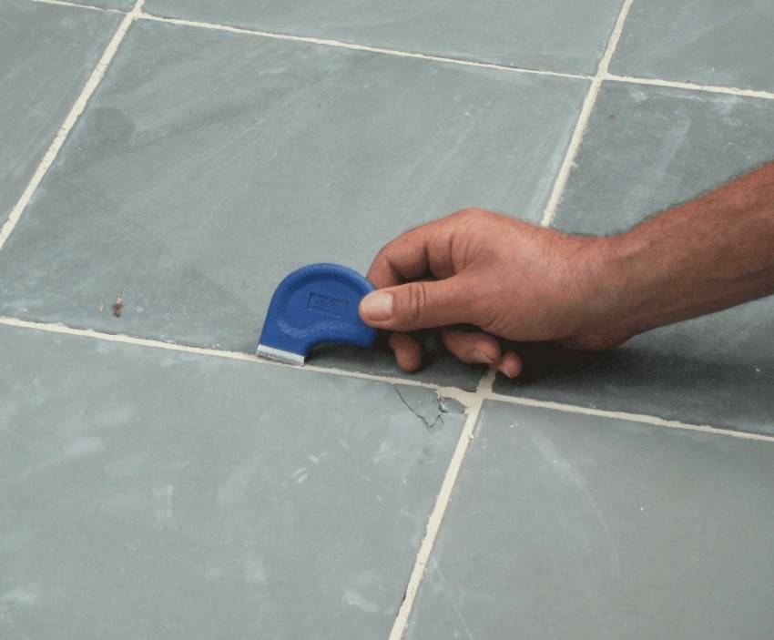 Обновить затирку можно так. Старое покрытие удалить с помощью обычного строительного ножа или специального «расшивателя». Выбор инструмента – дело индивидуальное, главное, чтобы инструмент не оставлял царапин и других повреждений на поверхности плитки.