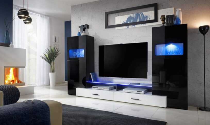 Популярные модели стенок конструируют таким образом, что можно в них вписать всю необходимую технику. Будь то компьютер или телевизор. Все зависит от запросов хозяев гостиной.