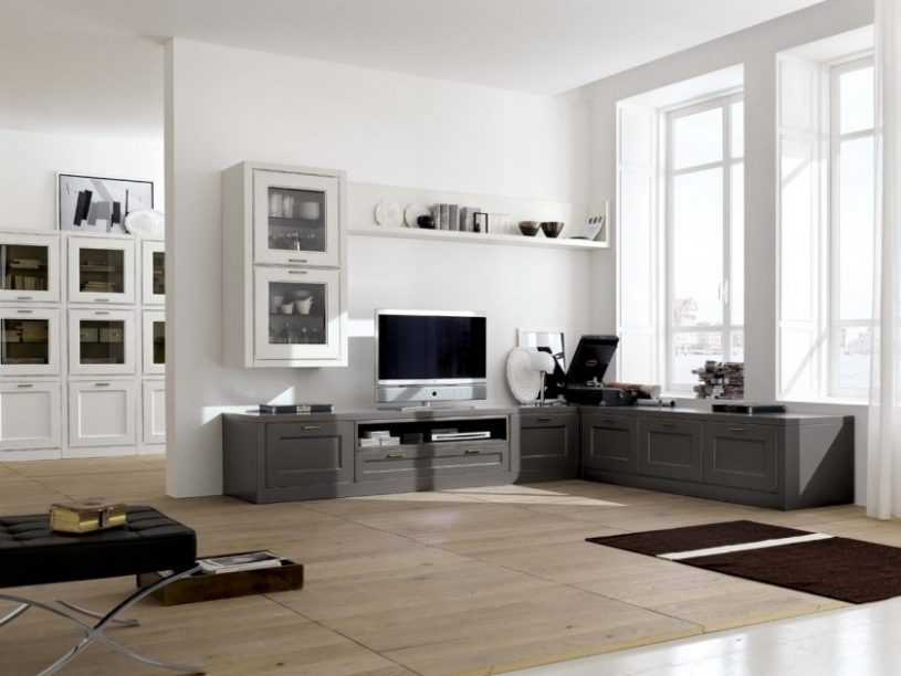 К примеру, при выборе модульного шкафа для гостиной стоит подбирать модель, включающую подставку для телевизора. Обычно открытые полочки используются для размещения декоративной посуды, сувениров или книг, а также они идеально подходят для декоративных элементов, которые помогут украсить интерьер комнаты.
